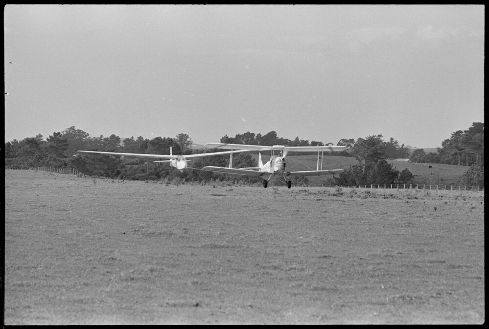 Date28 April 1972Reference Numberphoto gcc-20108DescriptionBay of Plenty Times reporter spends a day with the Tauranga Gliding Club at their strip in Belk Road. Pictured are Roy Russell and Jack Becconsall. Published 28 April 1972.FormatNegativePhysical Description35mm black-and-white negative (1/9)Photographer/CreatorBay of Plenty Times