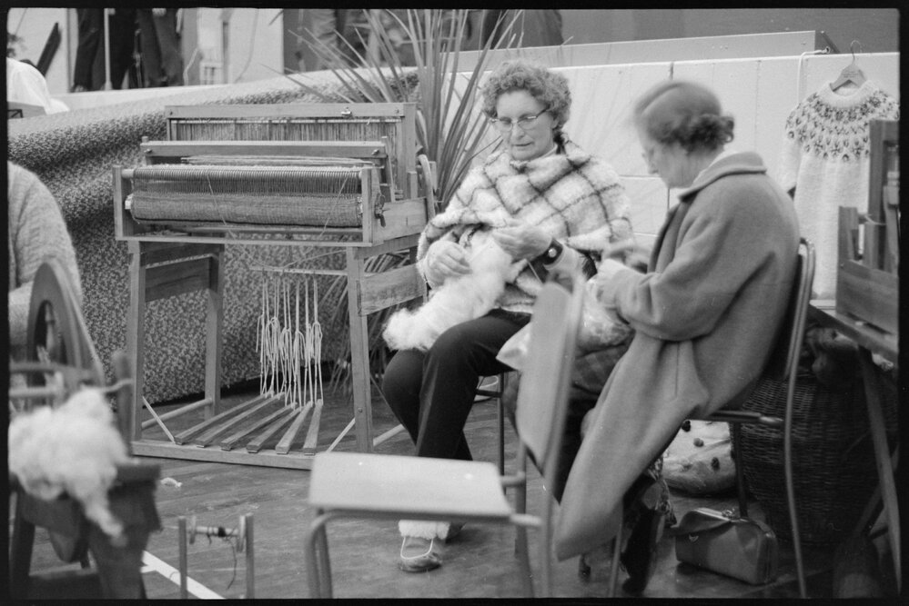 Date31 May 1971Reference Numberphoto gcc-20153DescriptionAn Expo Wool Show was held at the Queen Elizabeth Youth Centre with a performance by the NZ Wool Board's trained sheep a fashion parade with woollen garments and demonstrations by spinners, weavers and knitters. The show was presented by the Melrose Home and Hospital as a fundraiser. Published 31 May 1971.FormatNegativePhysical Description35mm black-and-white negative (2/5)Photographer/CreatorBay of Plenty Times