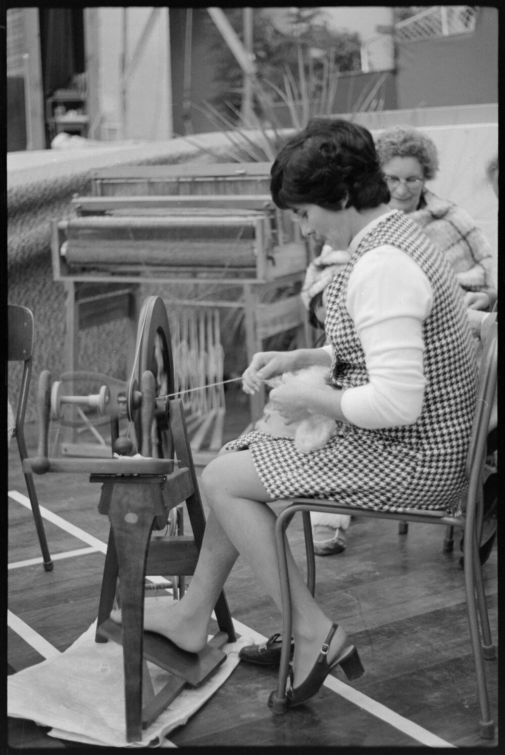 Date31 May 1971Reference Numberphoto gcc-20155DescriptionAn Expo Wool Show was held at the Queen Elizabeth Youth Centre with a performance by the NZ Wool Board's trained sheep a fashion parade with woollen garments and demonstrations by spinners, weavers and knitters. The show was presented by the Melrose Home and Hospital as a fundraiser. Published 31 May 1971.FormatNegativePhysical Description35mm black-and-white negative (4/5)Photographer/CreatorBay of Plenty Times