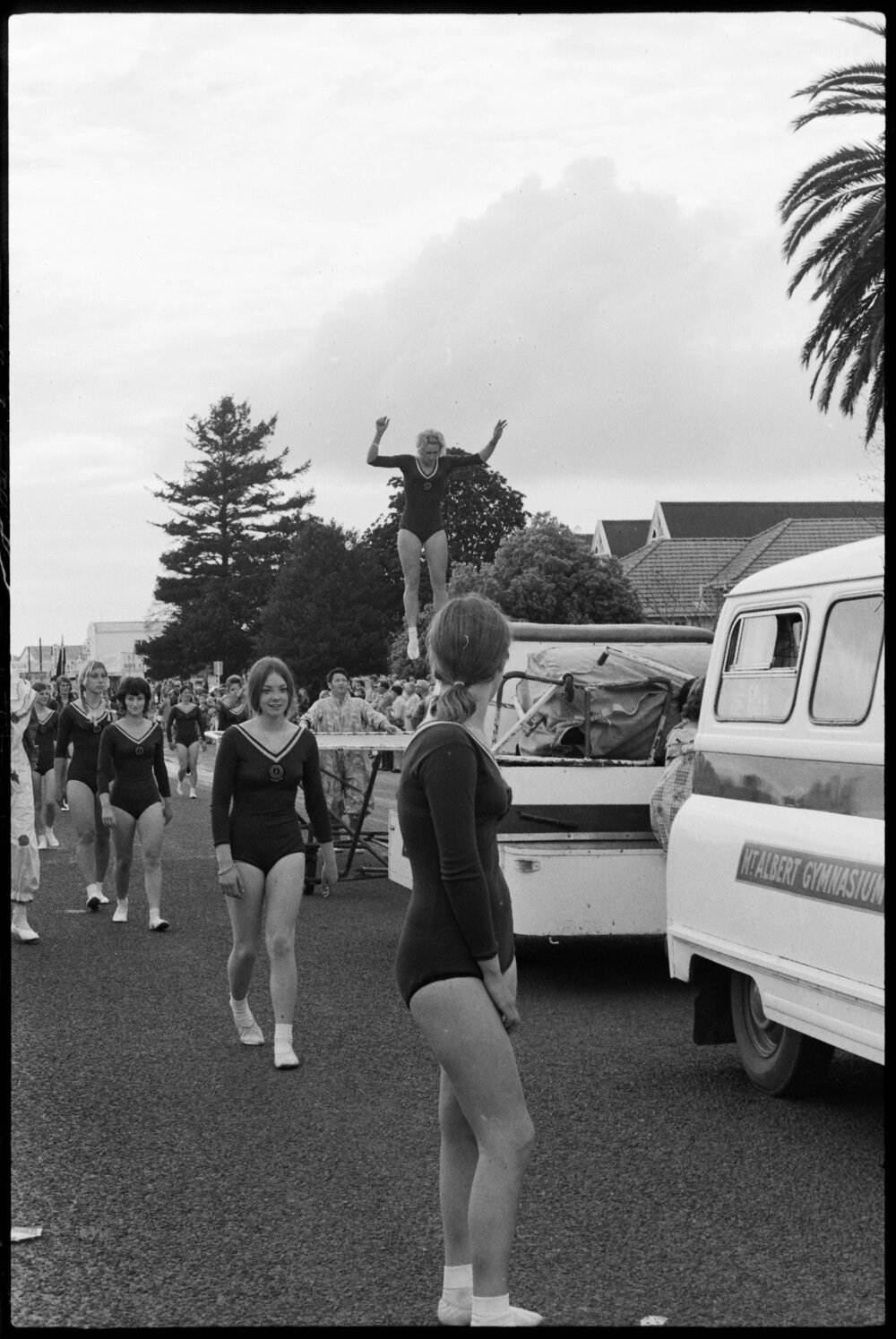 Date1971Reference Numberphoto gcc-20206DescriptionThe Bay of Plenty Orange Festival Society's float parade made its way down Tauranga's Cameron Road from Second Avenue to the Tauranga Racecourse in Greerton. Published in 1971.FormatNegativePhysical Description35mm black-and-white negative (2/5)Photographer/CreatorBay of Plenty Times