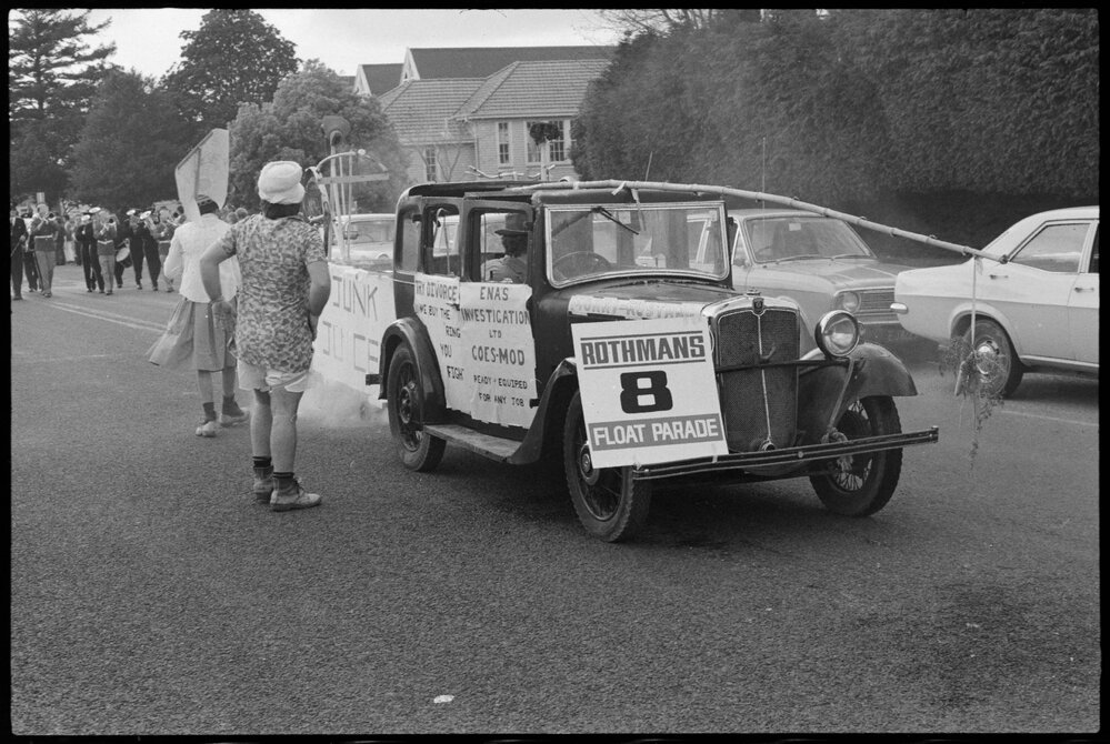 Date1971Reference Numberphoto gcc-20219DescriptionThe Bay of Plenty Orange Festival Society's float parade made its way down Tauranga's Cameron Road from Second Avenue to the Tauranga Racecourse in Greerton. Published in 1971.FormatNegativePhysical Description35mm black-and-white negative (2/5)Photographer/CreatorBay of Plenty Times