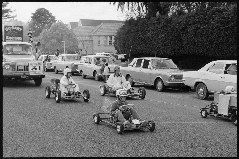Date1971Reference Numberphoto gcc-20243DescriptionThe Bay of Plenty Orange Festival Society's float parade made its way down Tauranga's Cameron Road from Second Avenue to the Tauranga Racecourse in Greerton. Published in 1971.FormatNegativePhysical Description35mm black-and-white negative (2/5)Photographer/CreatorBay of Plenty Times