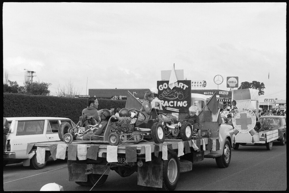 Date1971Reference Numberphoto gcc-20244DescriptionThe Bay of Plenty Orange Festival Society's float parade made its way down Tauranga's Cameron Road from Second Avenue to the Tauranga Racecourse in Greerton. Published in 1971.FormatNegativePhysical Description35mm black-and-white negative (3/5)Photographer/CreatorBay of Plenty Times