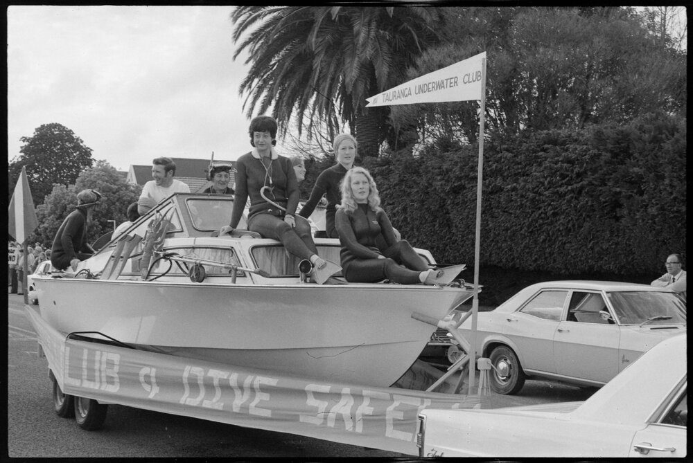 Date1971Reference Numberphoto gcc-20247DescriptionThe Bay of Plenty Orange Festival Society's float parade made its way down Tauranga's Cameron Road from Second Avenue to the Tauranga Racecourse in Greerton. Published in 1971.FormatNegativePhysical Description35mm black-and-white negative (1/4)Photographer/CreatorBay of Plenty Times