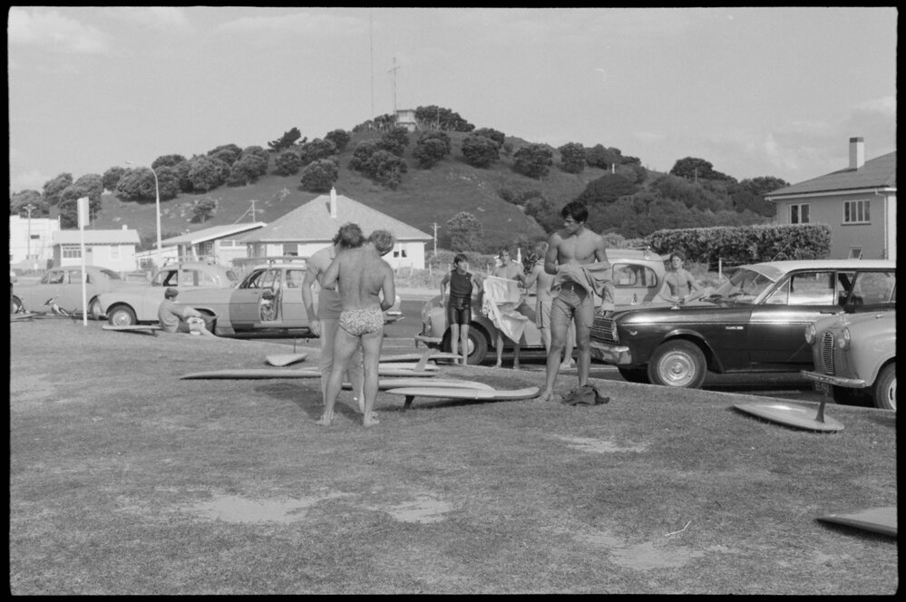 Date1971Reference Numberphoto gcc-20274DescriptionTauranga Boys' College Athletic Sports, including surfing at Mount Maunganui with Hopukiore in background. Published in 1971.FormatNegativePhysical Description35mm black-and-white negative (5/6)Photographer/CreatorBay of Plenty Times