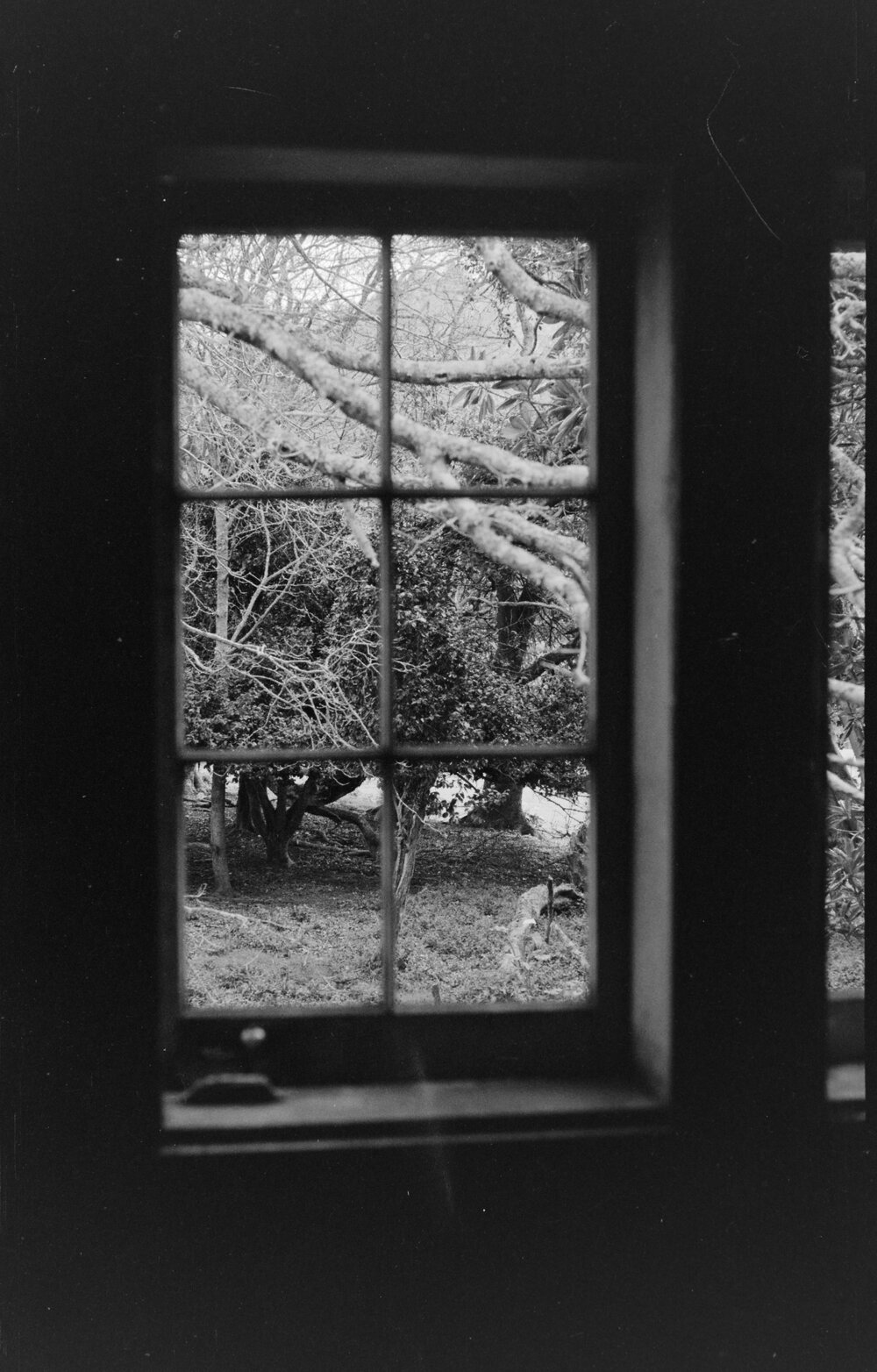 Datec. 1971Reference Numberphoto gcc-20342DescriptionŌngare Point Museum, Athenree. Looking through the window from inside the house.FormatNegativePhysical Description35mm black-and-white negative (3/4)Photographer/CreatorBay of Plenty Times