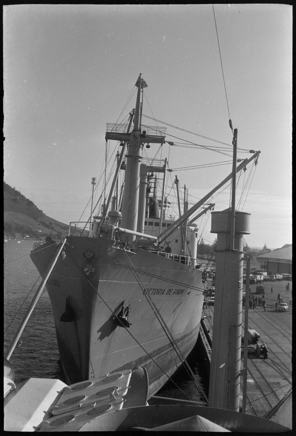 Date3 May 1972Reference Numberphoto gcc-20395DescriptionDairy produce and livestock being loaded at the Port of Tauranga onto the Victoria de Giron, headed for Cuba. Published 3 May 1972.FormatNegativePhysical Description35mm black-and-white negative (7/9)Photographer/CreatorBay of Plenty Times