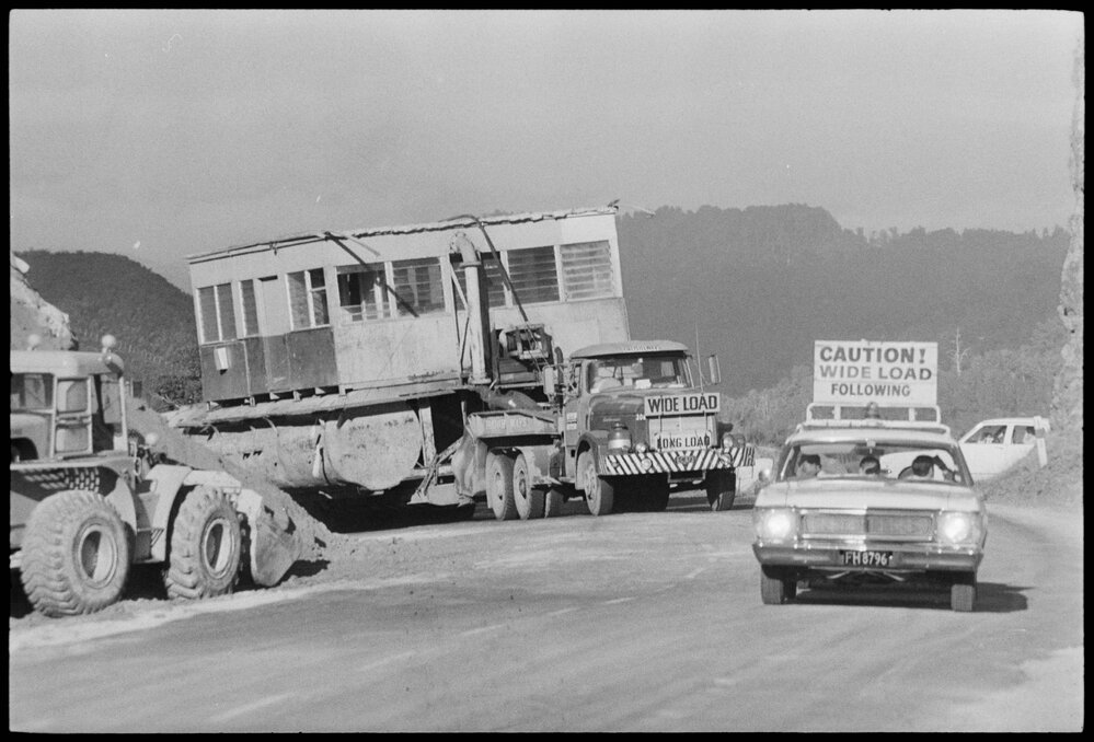 Date12 May 1972Reference Numberphoto gcc-20449DescriptionA dredge was hauled from Auckland to Matua over the Kaimai hills, for work by Kingslea Marinas Ltd in estuary reclamation work. Published 12 May 1972.FormatNegativePhysical Description35mm black-and-white negative (9/18)Photographer/CreatorBay of Plenty Times
