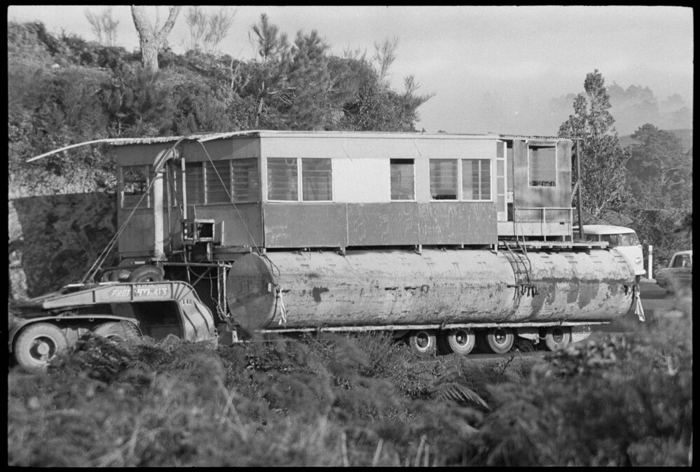 Date12 May 1972Reference Numberphoto gcc-20451DescriptionA dredge was hauled from Auckland to Matua over the Kaimai hills, for work by Kingslea Marinas Ltd in estuary reclamation work. Published 12 May 1972.FormatNegativePhysical Description35mm black-and-white negative (11/18)Photographer/CreatorBay of Plenty Times