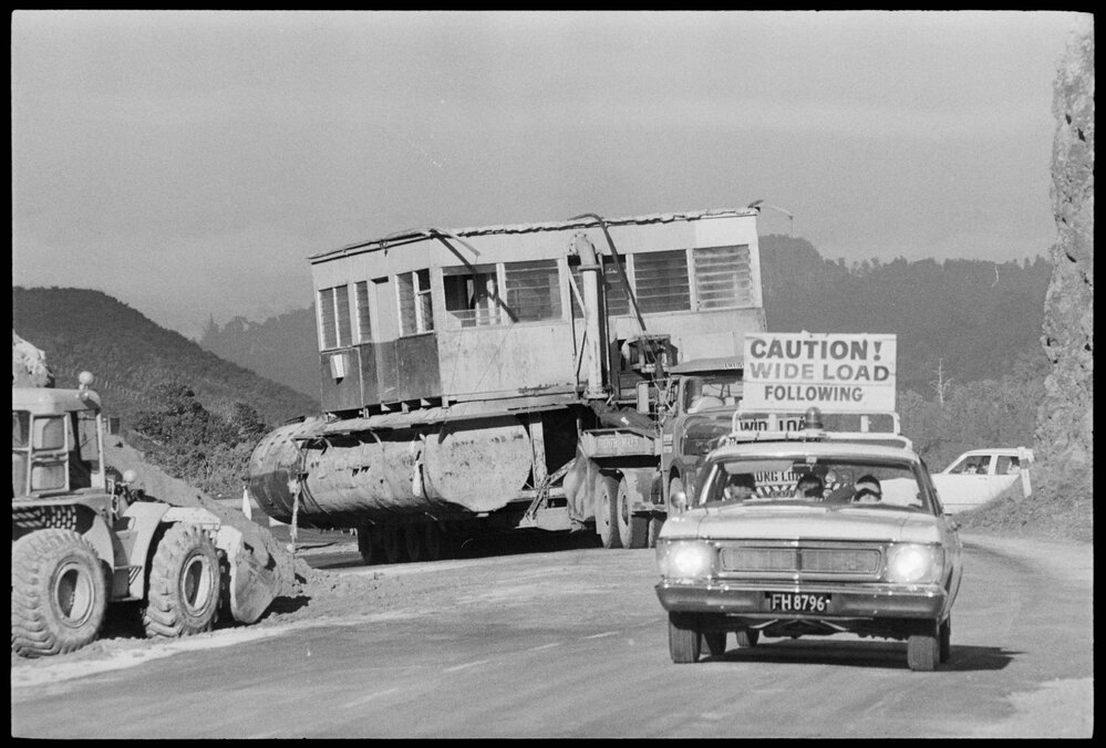 Date12 May 1972Reference Numberphoto gcc-20458DescriptionA dredge was hauled from Auckland to Matua over the Kaimai hills, for work by Kingslea Marinas Ltd in estuary reclamation work. Published 12 May 1972.FormatNegativePhysical Description35mm black-and-white negative (18/18)Photographer/CreatorBay of Plenty Times
