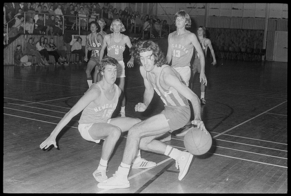 Date12 May 1972Reference Numberphoto gcc-20464DescriptionThe Newcastle under 18 men's basketball side played the Bay of Plenty under 20 team at the Memorial Park Hall in Tauranga. Published 12 May 1972.FormatNegativePhysical Description35mm black-and-white negative (2/3)Photographer/CreatorBay of Plenty Times