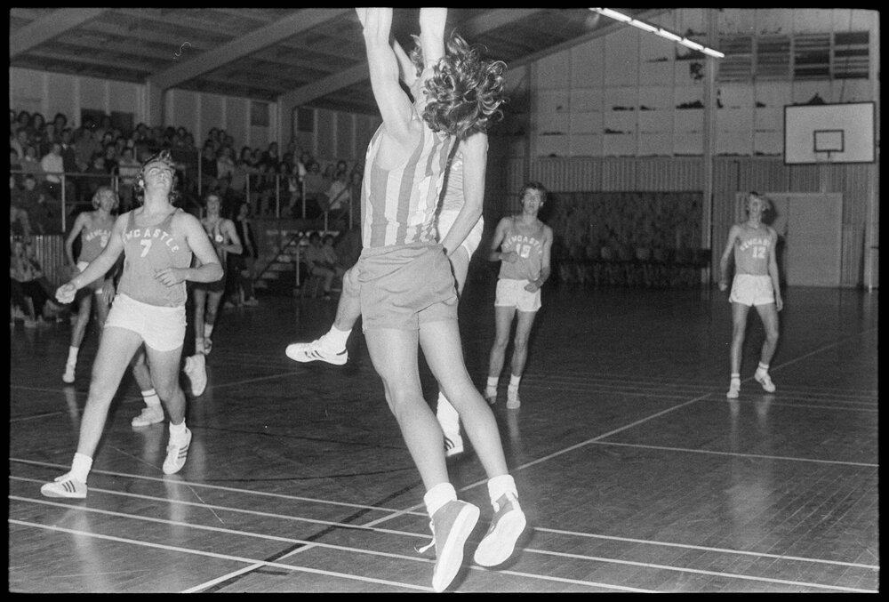 Date12 May 1972Reference Numberphoto gcc-20465DescriptionThe Newcastle under 18 men's basketball side played the Bay of Plenty under 20 team at the Memorial Park Hall in Tauranga. Published 12 May 1972.FormatNegativePhysical Description35mm black-and-white negative (3/3)Photographer/CreatorBay of Plenty Times