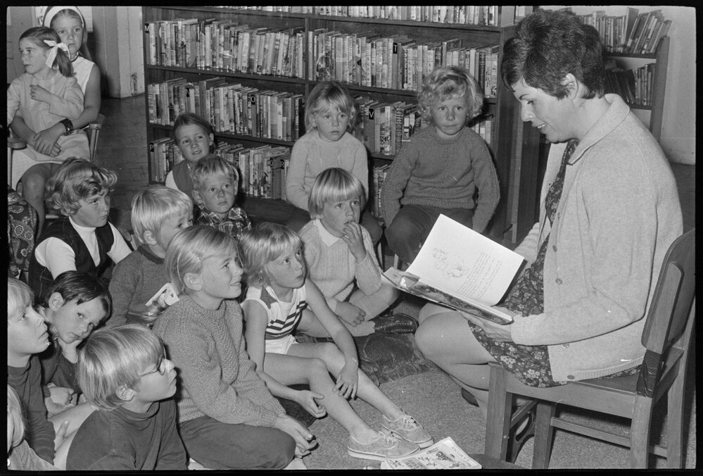 Date12 May 1972Reference Numberphoto gcc-20472DescriptionMrs D. Gittos reads children a fairy tale at the Tauranga Children's Library. Published 12 May 1972.FormatNegativePhysical Description35mm black-and-white negative (1/4)Photographer/CreatorBay of Plenty Times
