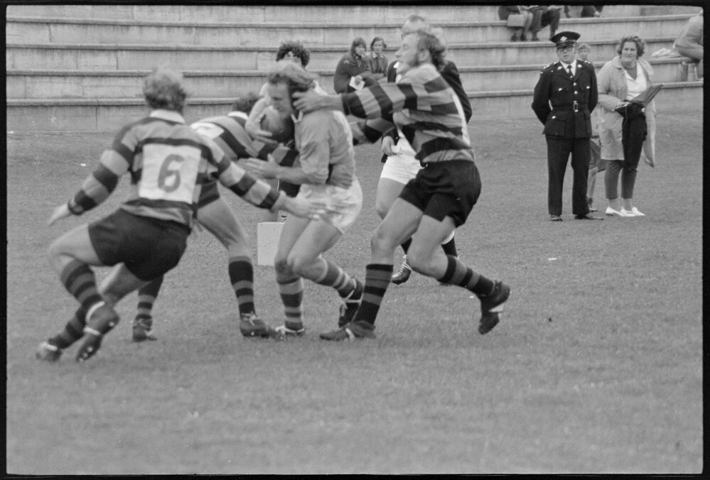 Date8 May 1972Reference Numberphoto gcc-20491DescriptionOld Boys in rugby match against Cadets at the Tauranga Domain. Published 8 May 1972.FormatNegativePhysical Description35mm black-and-white negative (1/3)Photographer/CreatorBay of Plenty Times