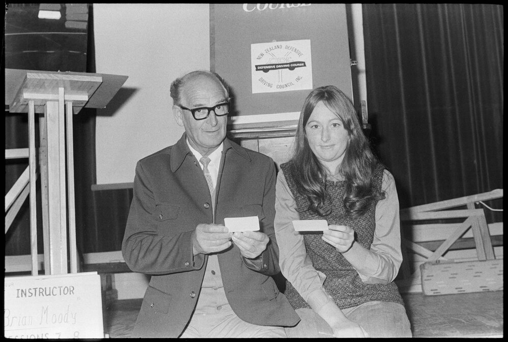 Date9 May 1972Reference Numberphoto gcc-20494DescriptionThe oldest and youngest drivers who qualified in the latest defensive driving course conducted by the Western Bay of Plenty Road Safety Council at Tauranga. Pictured are R. T. A. Brown and A. Murphy. Published 9 May 1972.FormatNegativePhysical Description35mm black-and-white negative (1/3)Photographer/CreatorBay of Plenty Times