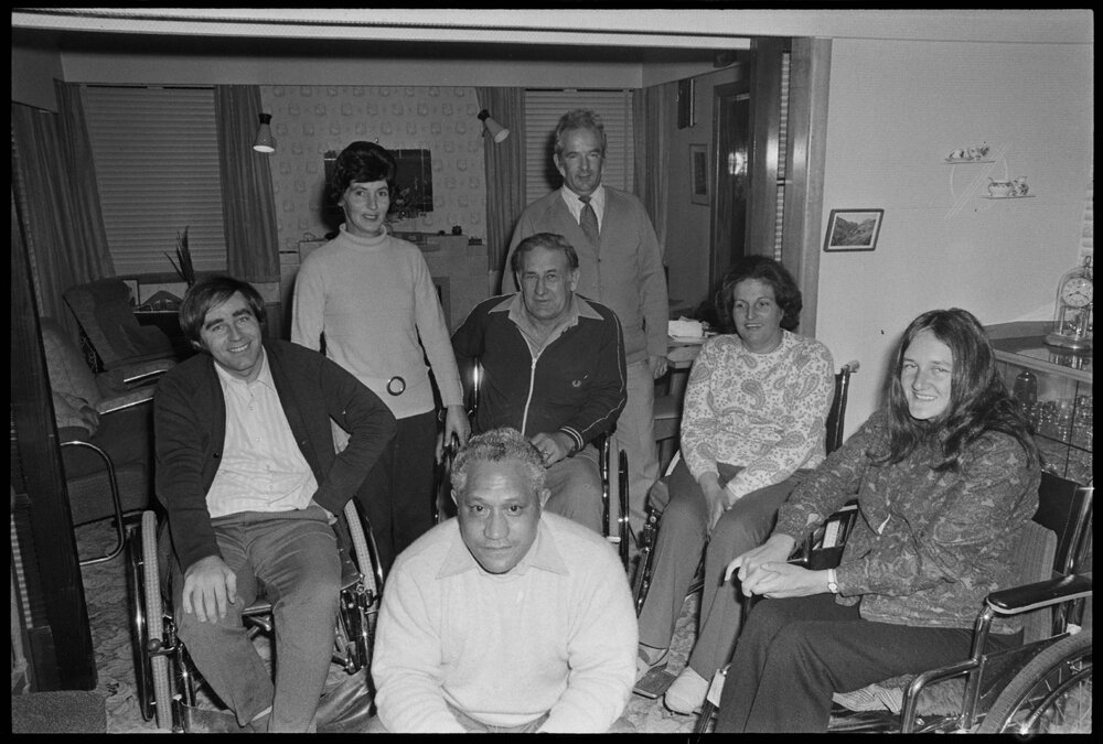 Date14 September 1973Reference NumberPhoto gcc-29608DescriptionTauranga's paraplegic sporting fraternity, five have been selected for the fourth Commonwealth Paraplegic Games to be held next year in Dunedin. From left, Ross Hunds, Mrs Gwen Bradbury, Doug Moore, Kevin Waddell, Rae Gibbs, Yvonne Prole and Reuben Ngata. Published 14 September 1973.FormatNegativePhysical Description35mm black-and-white negative (3/3)Photographer/CreatorBay of Plenty Times