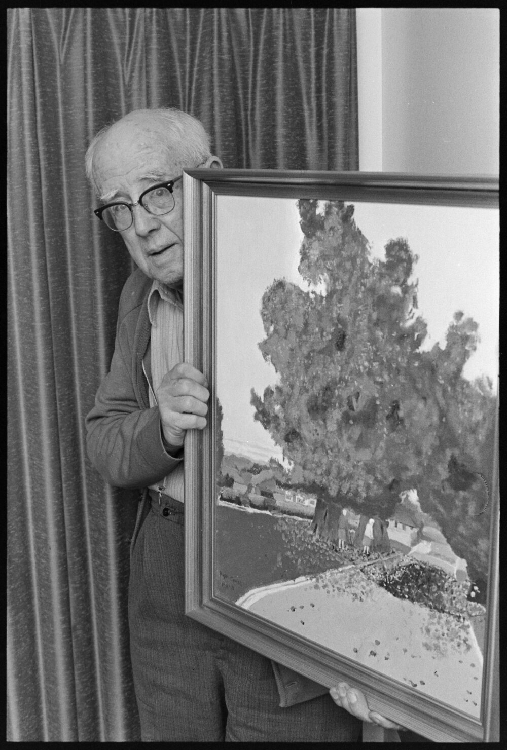 Date17 September 1973Reference NumberPhoto gcc-29637DescriptionThe Melrose Home and Hospital in Tauranga has acquired a landscape oil painting the work of one if its residents. Mr H. Crabb finished the painting after working on it for six months. Published 17 September 1973.FormatNegativePhysical Description35mm black-and-white negative (1/3)Photographer/CreatorBay of Plenty Times