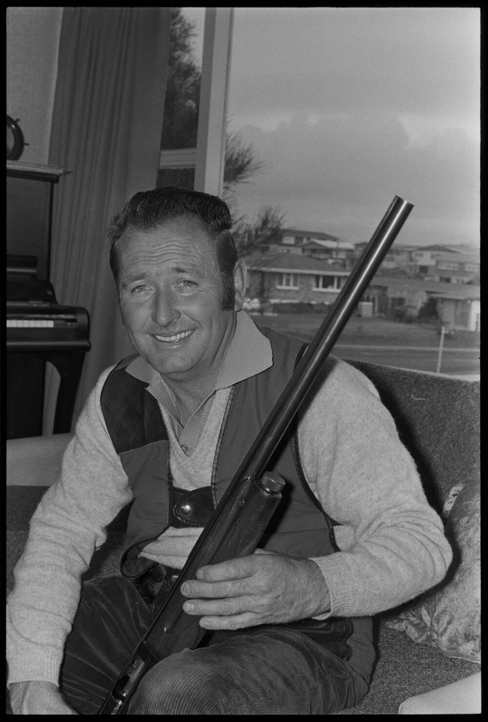 Date5 October 1973Reference NumberPhoto gcc-29870DescriptionBruce Anderson, Crack Mount Maunganui shooter, was selected in the New Zealand skeet shooting team to complete in the world championships at Melbourne next month. Not published 5 October 1973.FormatNegativePhysical Description35mm black-and-white negative (2/3)Photographer/CreatorBay of Plenty Times