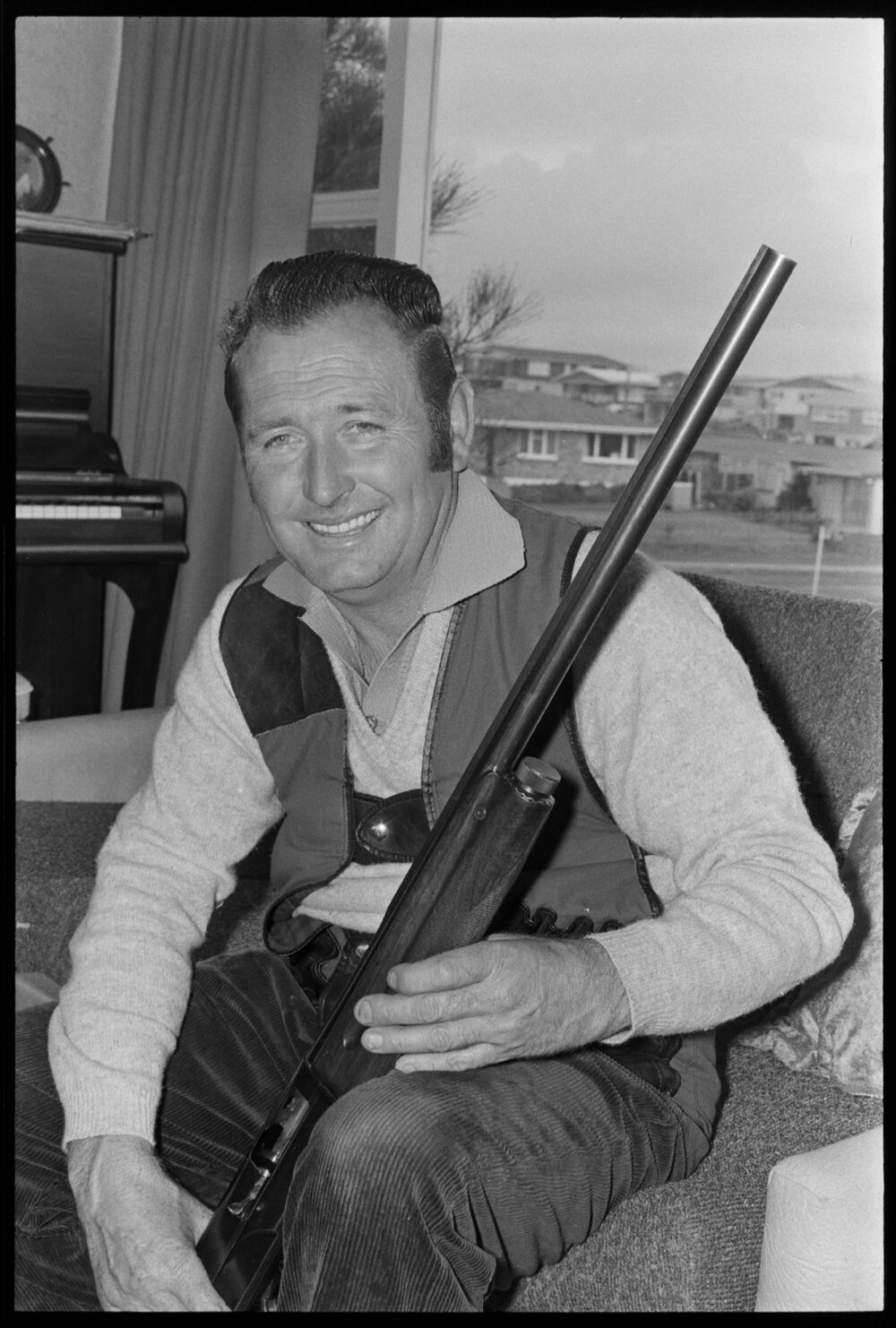 Date5 October 1973Reference NumberPhoto gcc-29871DescriptionBruce Anderson, Crack Mount Maunganui shooter, was selected in the New Zealand skeet shooting team to complete in the world championships at Melbourne next month. Published 5 October 1973.FormatNegativePhysical Description35mm black-and-white negative (3/3)Photographer/CreatorBay of Plenty Times