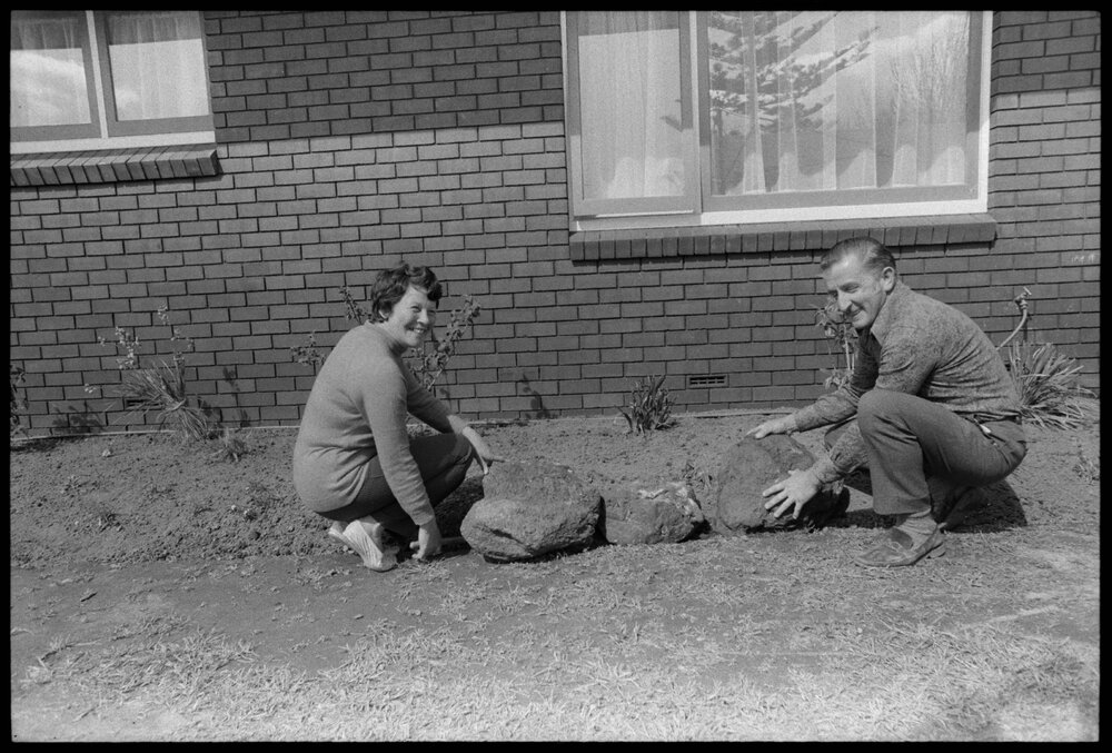 Date6 October 1973Reference NumberPhoto gcc-29889DescriptionMr and Mrs Gane outside their new 'Japanese' style house in Ōtūmoetai. Not published 6 October 1973.FormatNegativePhysical Description35mm black-and-white negative (2/3)Photographer/CreatorBay of Plenty Times