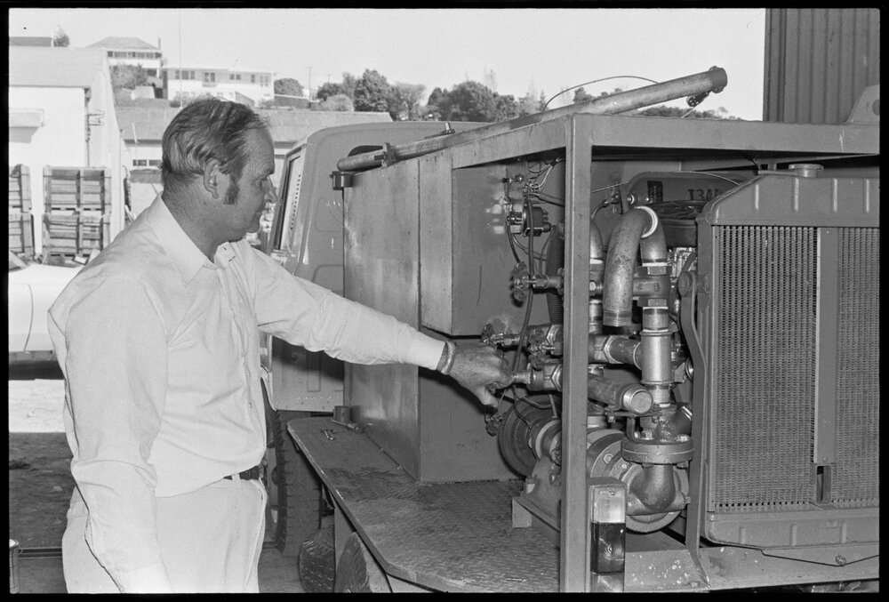 Date13 October 1973Reference NumberPhoto gcc-29986DescriptionA machine built in Tauranga for a Rotorua businessman, Mr B. Nicholson has attracted overseas interest. His soil company, Evergreen, builds the machines for New Zealand and exports use of his hydraulic seedling process, which has won him several contracts overseas. Not published 13 October 1973.FormatNegativePhysical Description35mm black-and-white negative (2/3)Photographer/CreatorBay of Plenty Times