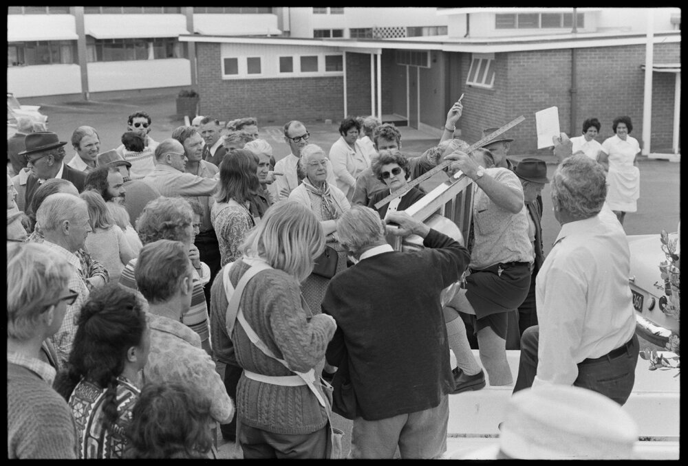 Date15 October 1973Reference NumberPhoto gcc-30014DescriptionTotal clearning in auction at Tauranga hospital auction.Not published 15 October 1973.FormatNegativePhysical Description35mm black-and-white negative (1/2)Photographer/CreatorBay of Plenty Times