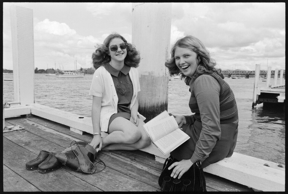Date16 October 1973Reference NumberPhoto gcc-30029DescriptionGlenys Beetham, 16 (left) and Pamela Bishop, 17 having lunch down on The Strand. Published 16 October 1973.FormatNegativePhysical Description35mm black-and-white negative (2/3)Photographer/CreatorBay of Plenty Times