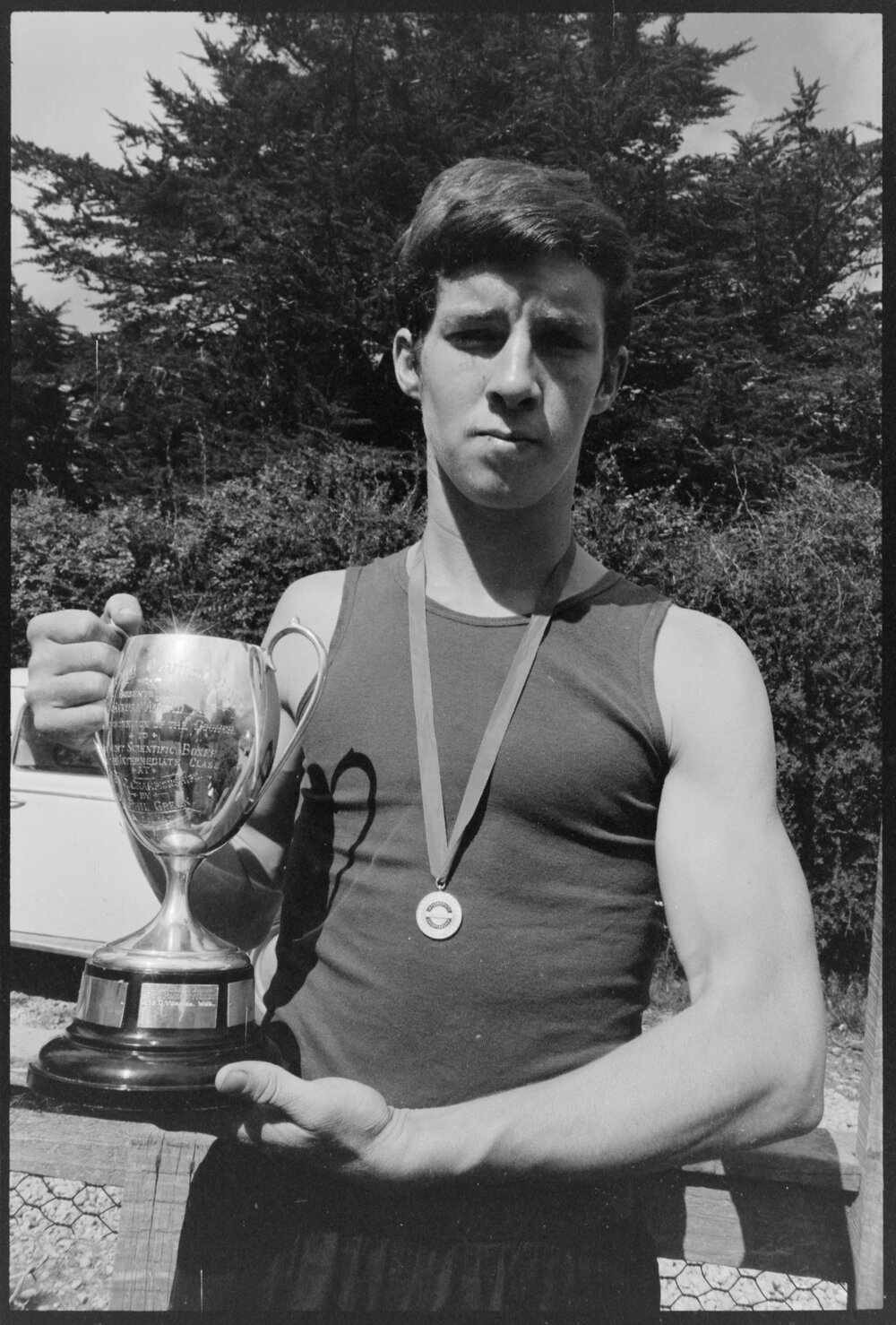 Date19 October 1973Reference NumberPhoto gcc-30086DescriptionDave Verner, the 17 year-old Kaimai shepherd who recently won the New Zealand lightweight boxing title in Hamilton, says he intends to retire in about two or three years. Published 19 October 1973.FormatNegativePhysical Description35mm black-and-white negative (1/3)Photographer/CreatorBay of Plenty Times