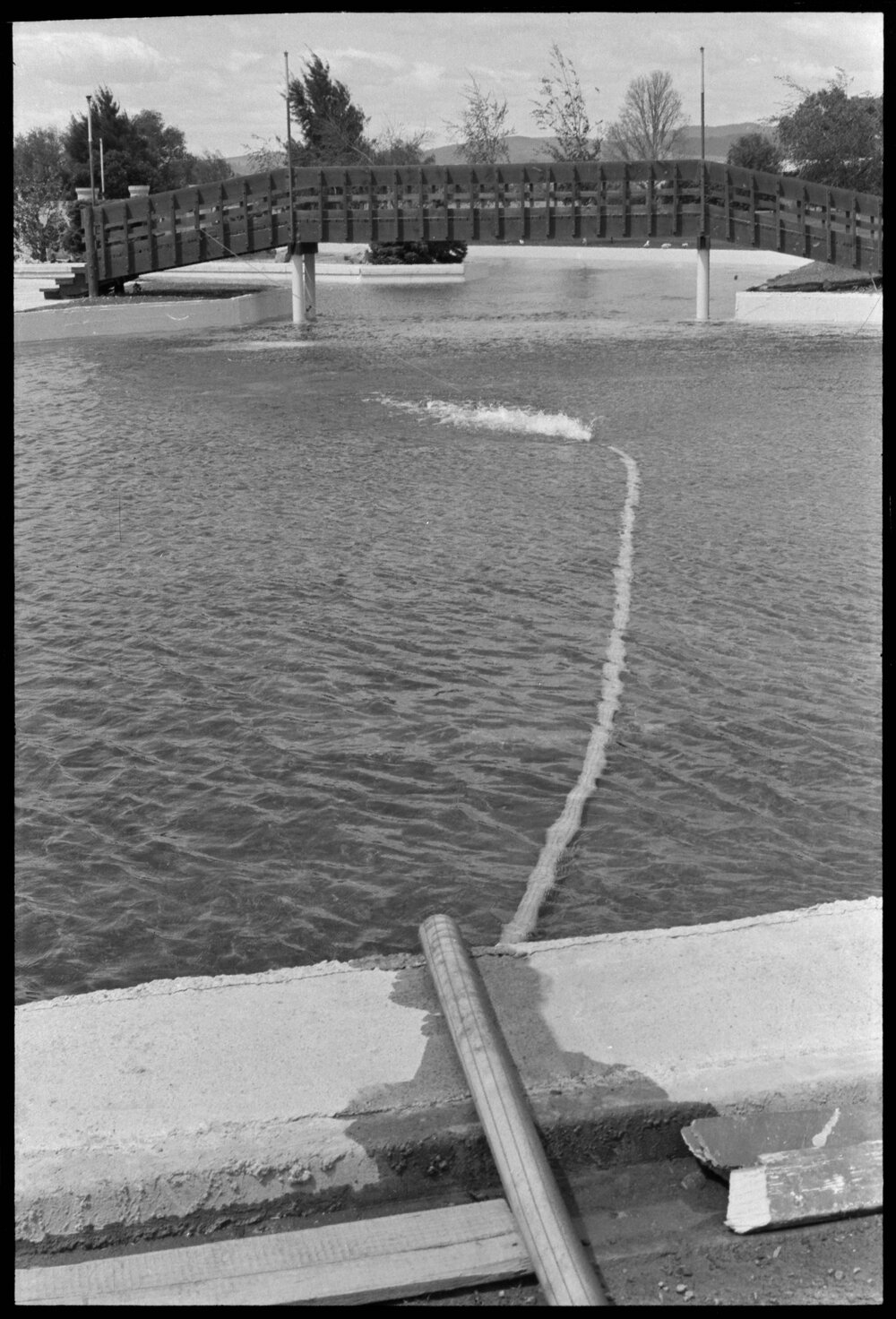 Date23 October 1973Reference NumberPhoto gcc-30112DescriptionHose filling up the Memorial Park Marina in preparation for Summer. Not published 23 October 1973.FormatNegativePhysical Description35mm black-and-white negative (1/3)Photographer/CreatorBay of Plenty Times