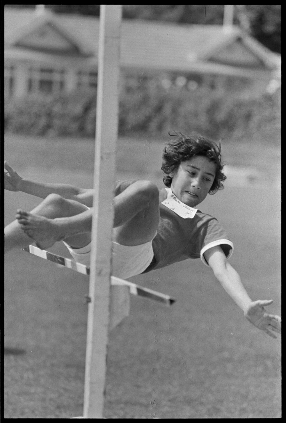 Date25 October 1973Reference NumberPhoto gcc-30143DescriptionHigh jumper Steven Billing of Ōtūmoetai Primary School at the Tauranga and District Primary School sports, Tauranga Domain. Published 25 October 1973.FormatNegativePhysical Description35mm black-and-white negative (2/3)Photographer/CreatorBay of Plenty Times