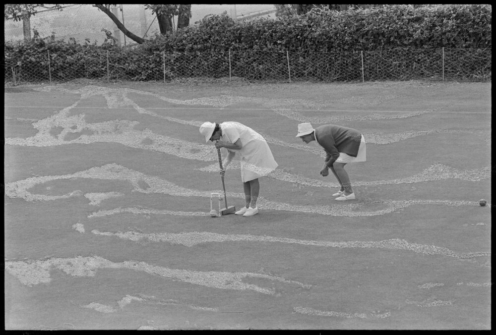 Date25 October 1973Reference NumberPhoto gcc-30151DescriptionMrs L. Sparling of Mount Maunganui is watched by referee Mrs S. Cambie at the Tauranga Croquet Club's lawns. Published 25 October 1973.FormatNegativePhysical Description35mm black-and-white negative (1/3)Photographer/CreatorBay of Plenty Times