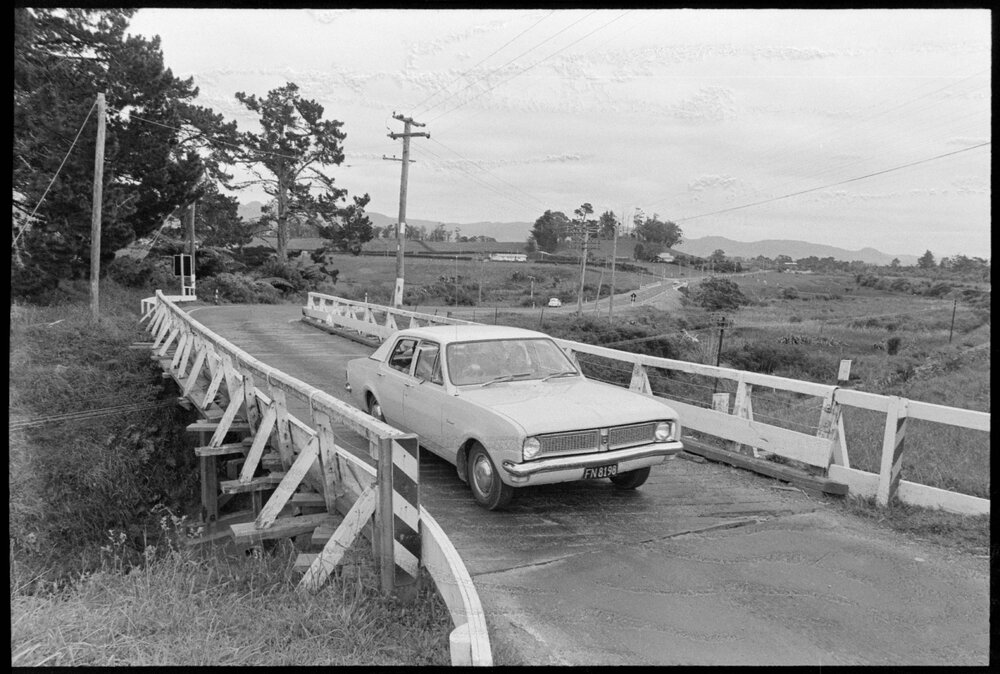 Date26 October 1973Reference NumberPhoto gcc-30160DescriptionNarrow bridge which is near Wrights Road near Katikati is due to be upgraded under a proposal announced at a District Roads Council meeting at Mount Maunganui. Published 26 October 1973.FormatNegativePhysical Description35mm black-and-white negative (1/3)Photographer/CreatorBay of Plenty Times