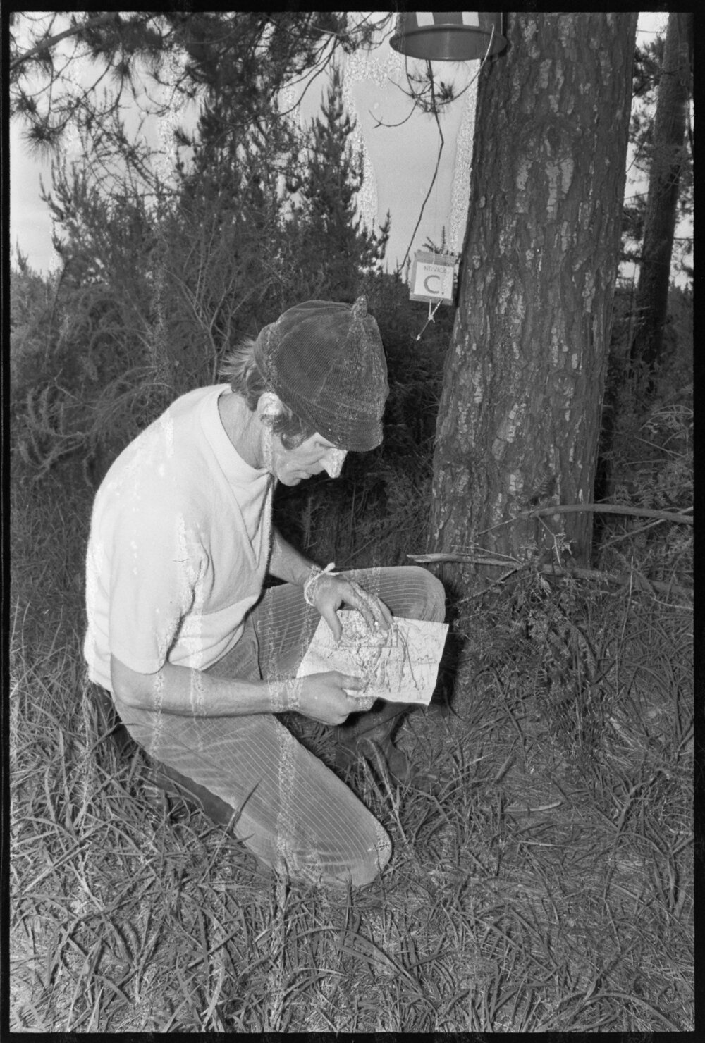 Date29 October 1973Reference NumberPhoto gcc-30192DescriptionMr Tony Nicholls, setting up one of the courses for the Bay of Plenty Orienteering Club's meeting at Ōropi. Published 29 October 1973.FormatNegativePhysical Description35mm black-and-white negative (1/3)Photographer/CreatorBay of Plenty Times