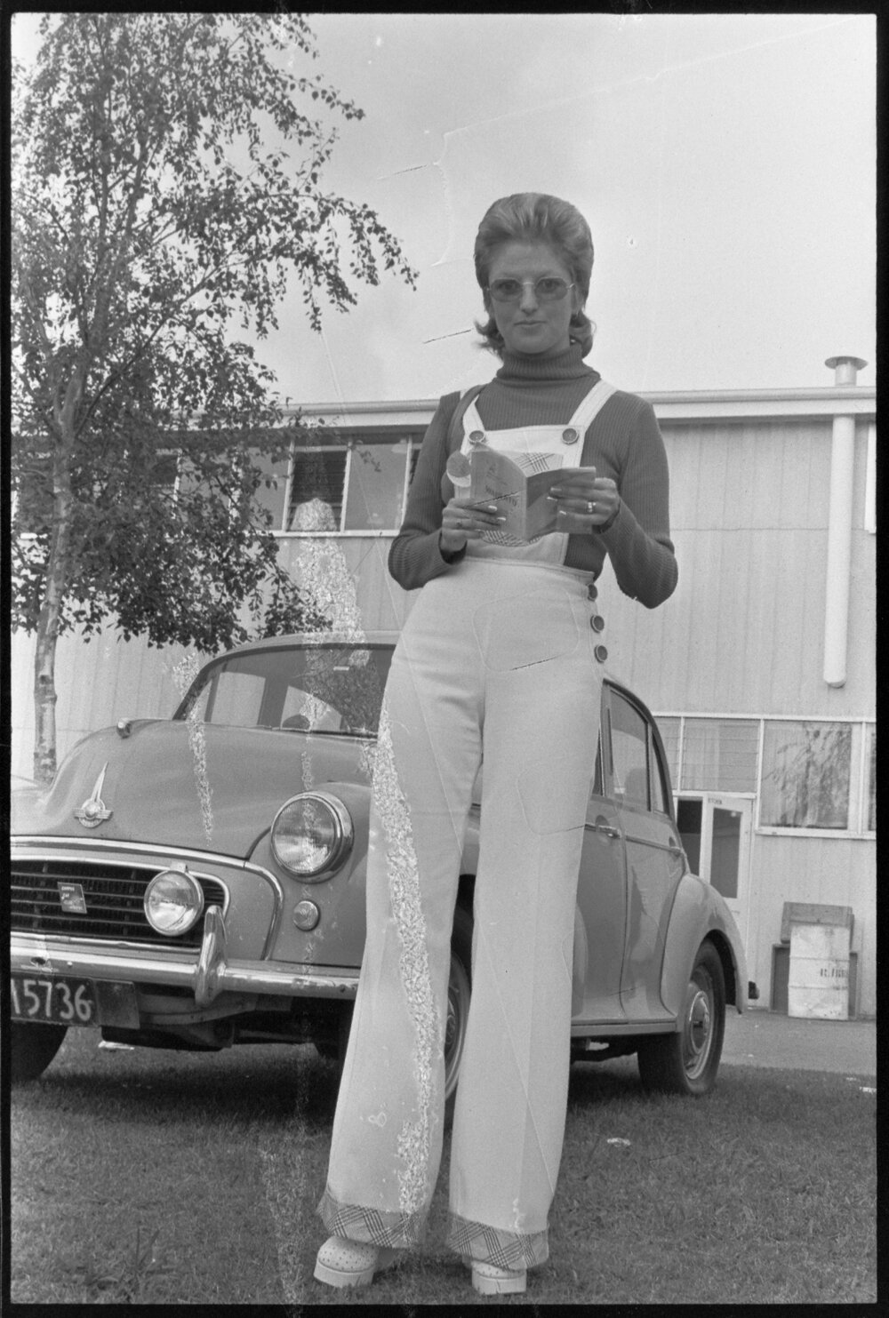 Date29 October 1973Reference NumberPhoto gcc-30197DescriptionRace day fashions, Owner-trainer, Mrs Linda Pocock of Thames. Not published 29 October 1973.FormatNegativePhysical Description35mm black-and-white negative (3/4)Photographer/CreatorBay of Plenty Times