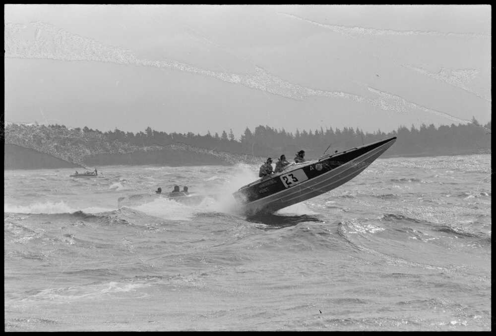 Date5 November 1973Reference NumberPhoto gcc-30267DescriptionThe Boss 100 powerboat race, Tauranga Harbour. Published 5 November 1973.FormatNegativePhysical Description35mm black-and-white negative (1/3)Photographer/CreatorBay of Plenty Times