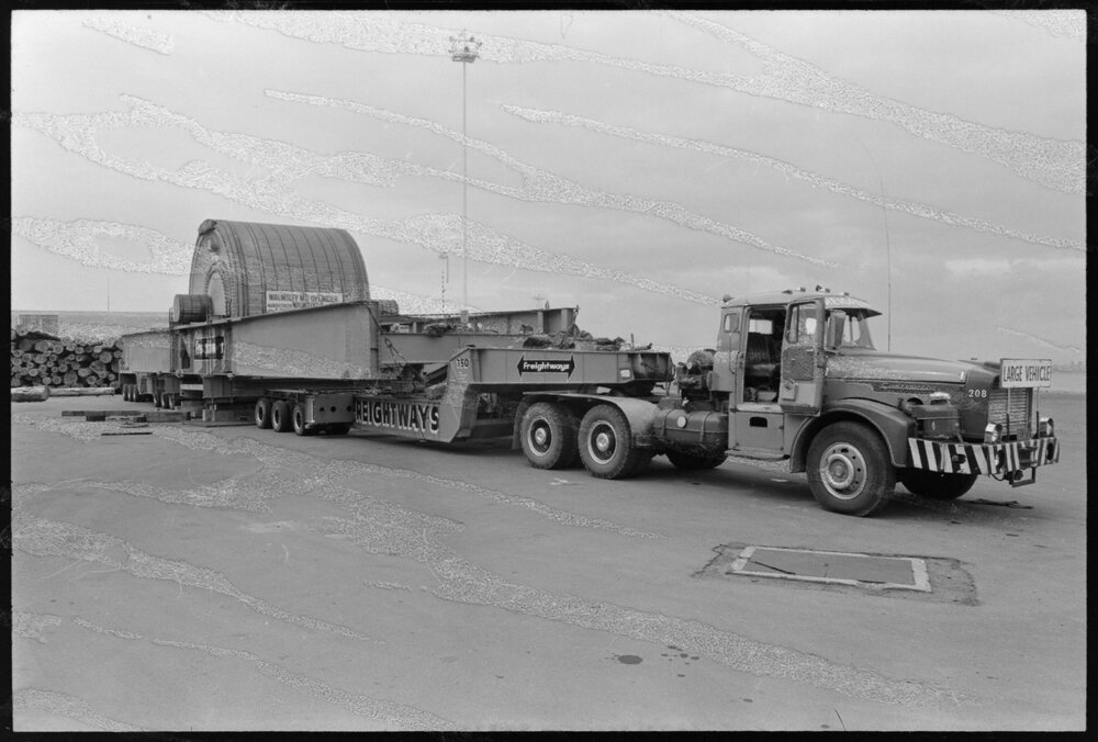 Date7 November 1973Reference NumberPhoto gcc-30285Description18ft 116-ton drying cylinder for the No. 2 paper machine at the Caxton mills, Kawerau. Published 7 November 1973.FormatNegativePhysical Description35mm black-and-white negative (1/3)Photographer/CreatorBay of Plenty Times