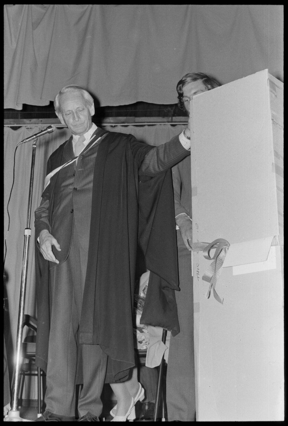 Date9 November 1973Reference NumberPhoto gcc-30305DescriptionPresentation at Mount Maunganui College to the retiring principal, Mr J. R. McClure. Not published 9 November 1973.FormatNegativePhysical Description35mm black-and-white negative (2/5)Photographer/CreatorBay of Plenty Times