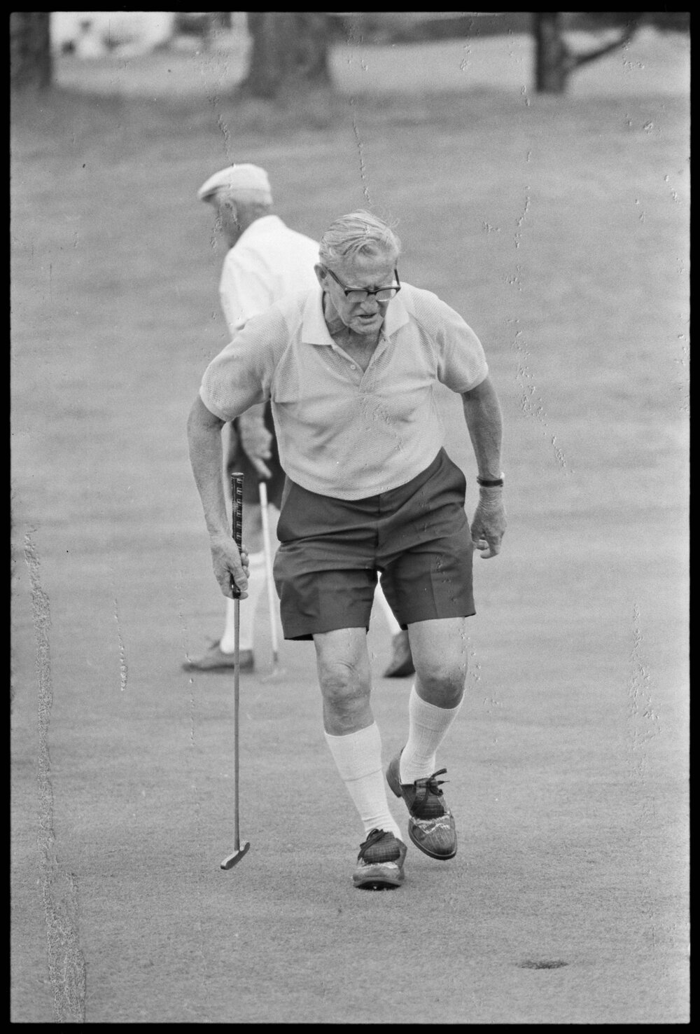 Date9 November 1973Reference NumberPhoto gcc-30309DescriptionMr A. T. Gregory of Ōtūmoetai, prepares to putt during the veterans' golf tournament at Mount Maunganui. Published 9 November 1973.FormatNegativePhysical Description35mm black-and-white negative (1/3)Photographer/CreatorBay of Plenty Times