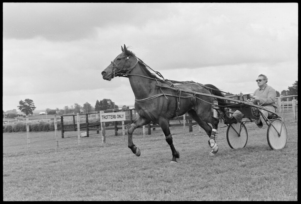 Date9 November 1973Reference NumberPhoto gcc-30322DescriptionMighty Johnny with its trainer, Ray Norton, having a solid workout at the Tauranga racecourse, Mighty Johnny by Johnny Globe is a runner in the Greertont Trot. Published 9 November 1973.FormatNegativePhysical Description35mm black-and-white negative (2/3)Photographer/CreatorBay of Plenty Times