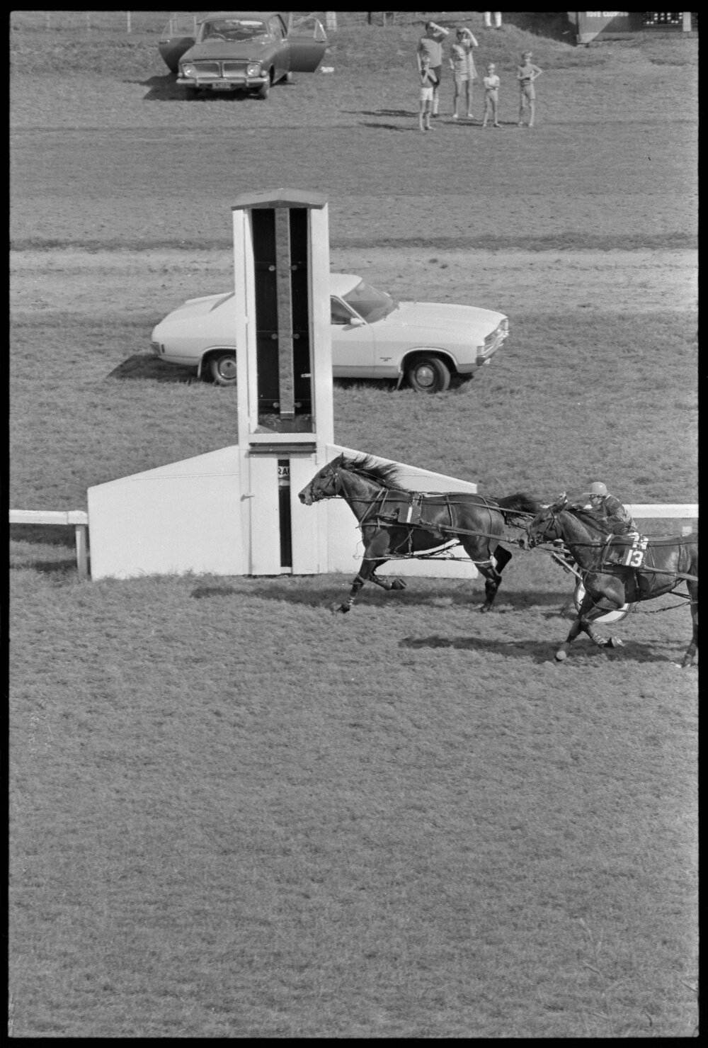 Date12 November 1973Reference NumberPhoto gcc-30360DescriptionCaledonian Garrison beats Irish Kiwi in the Single Direct Stakes at Tauranga. Published 12 November 1973.FormatNegativePhysical Description35mm black-and-white negative (1/3)Photographer/CreatorBay of Plenty Times