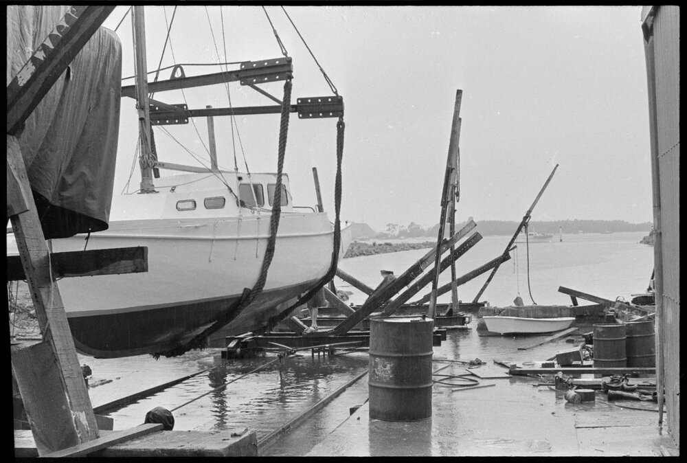 Date14 November 1973Reference NumberPhoto gcc-30380DescriptionBoat near the slipway channel which is forced to close near Sulphur Point. Published 14 November 1973.FormatNegativePhysical Description35mm black-and-white negative (4/6)Photographer/CreatorBay of Plenty Times