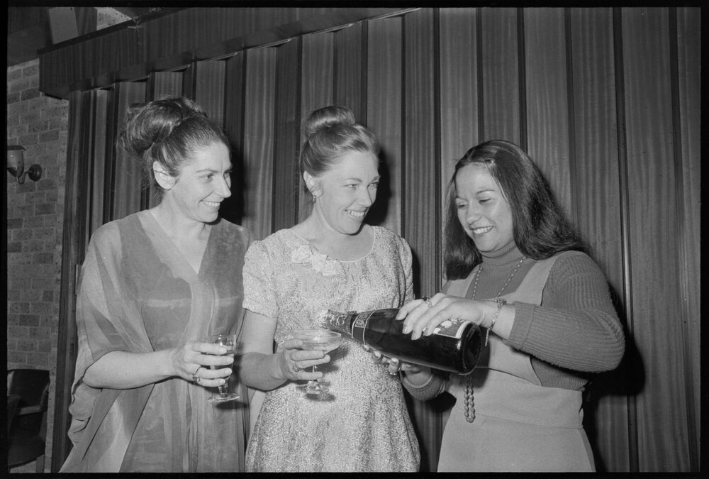 Date14 November 1973Reference NumberPhoto gcc-30383DescriptionTauranga Hospital community nurses celebrated receiving their 'first stripes' by taking their tutor sisters for dinner and a "night out" at the Greerton Hotel. Image shows Miss M. A. Mills, tutor sister, Miss V. C. Powell, community nurse and Miss Mattie Rutene, student community nurse and president of the 1973 class of community nurses. Published 14 November 1973.FormatNegativePhysical Description35mm black-and-white negative (1/3)Photographer/CreatorBay of Plenty Times
