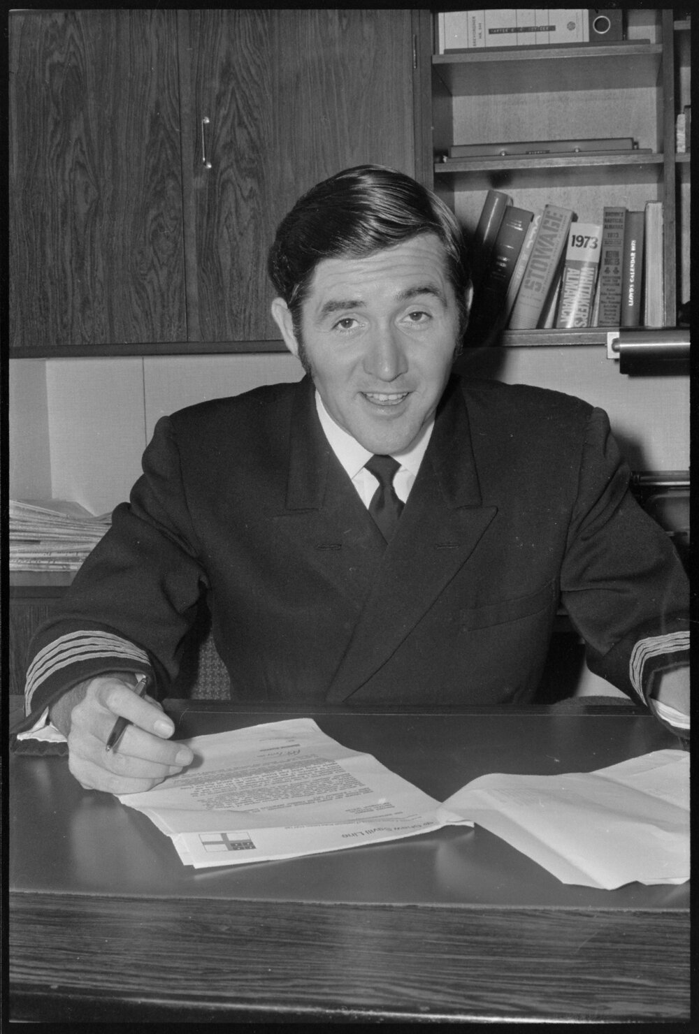 Date19 November 1973Reference NumberPhoto gcc-30517DescriptionCaptain Barton of the Mayfield ship. Published 19 November 1973.FormatNegativePhysical Description35mm black-and-white negative (3/4)Photographer/CreatorBay of Plenty Times