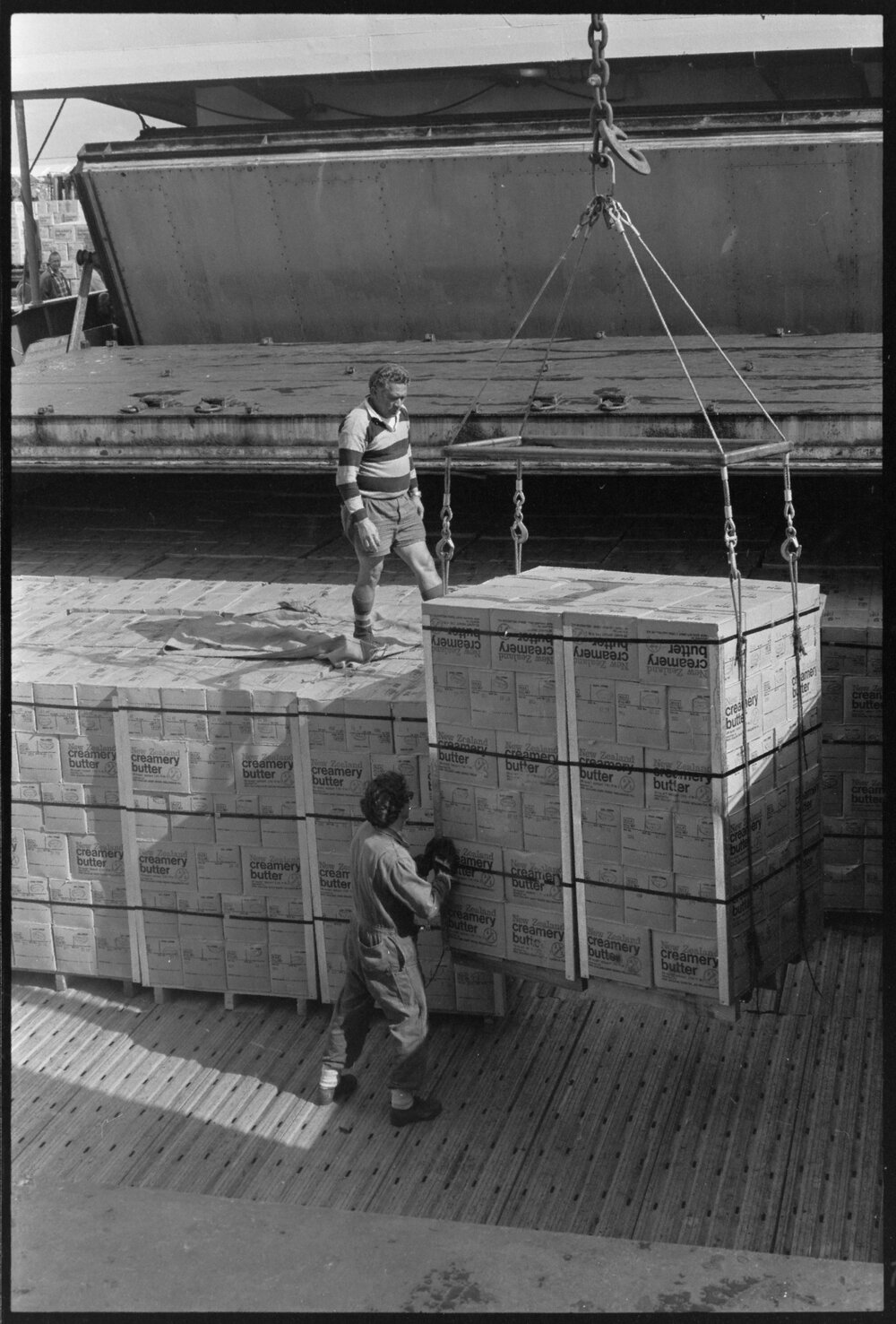 Date19 November 1973Reference NumberPhoto gcc-30519DescriptionExperimental unit loads of butter going aboard the Mayfield. Not published 19 November 1973.FormatNegativePhysical Description35mm black-and-white negative (1/3)Photographer/CreatorBay of Plenty Times