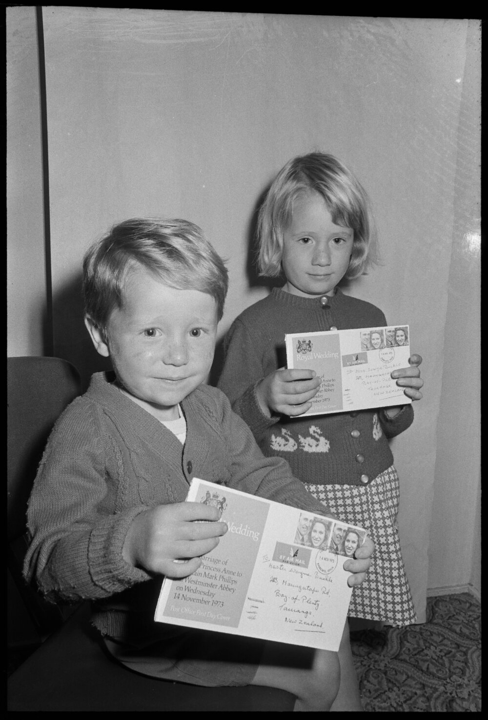 Two kids with Royal Wedding envelopes (22 November 1973). Pae Korokī, accessed 07/04/2026, https://paekoroki.tauranga.govt.nz/nodes/view/109689