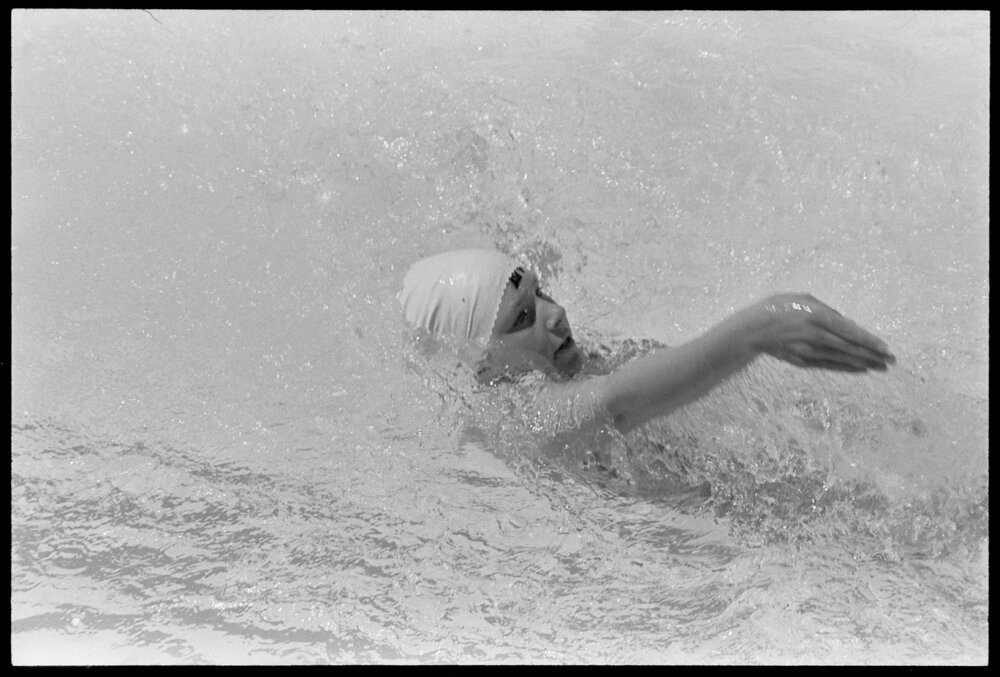 Date26 November 1973Reference NumberPhoto gcc-30623DescriptionSwimmer from Mount Maunganui Swimming Club Wendy Jackson in the Greerton Pool while competing in Bay of Plenty section of the national preliminary swimming events. Published 26 November 1973.FormatNegativePhysical Description35mm black-and-white negative (1/3)Photographer/CreatorBay of Plenty Times