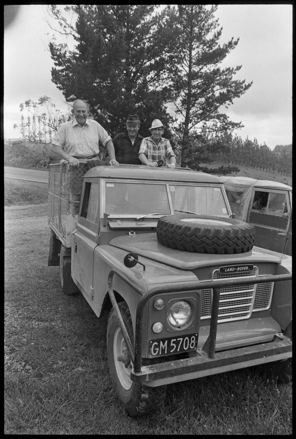 Date26 November 1973Reference NumberPhoto gcc-30626DescriptionMr C.W. Mundt (second left) chairman of Bay of Plenty Catchment Commission and vice-chairman of the Tauranga County Council, stands on the back of a Land Rover with Mr T. G. K. Lennard (second right) a commission and county council member, on the way to inspect part of State Forest 14. Not published 26 November 1973.FormatNegativePhysical Description35mm black-and-white negative (1/3)Photographer/CreatorBay of Plenty Times