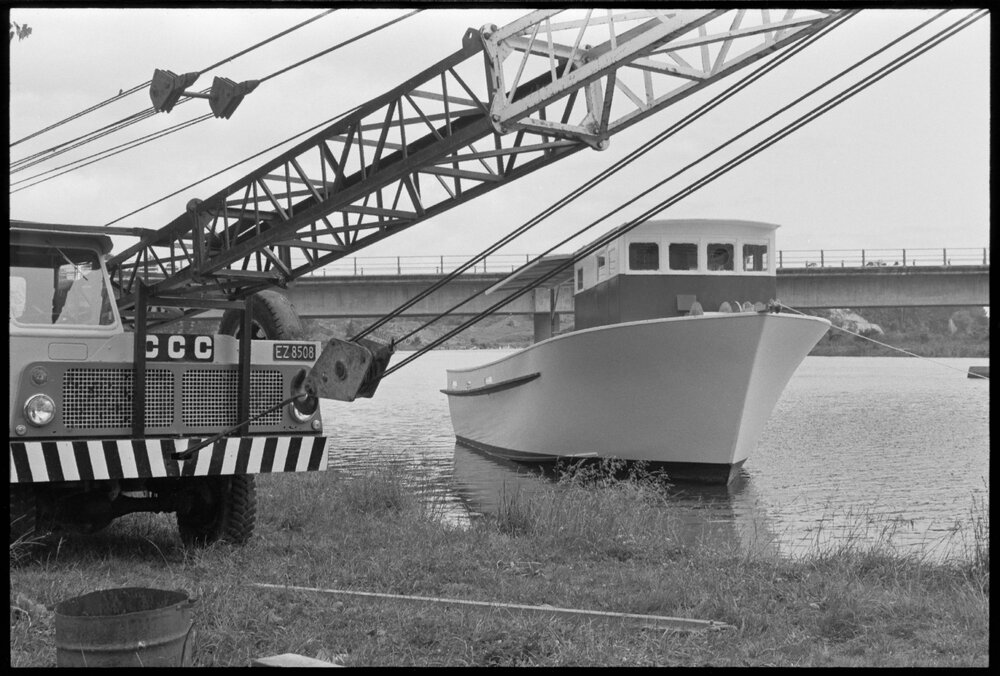 Date26 November 1973Reference NumberPhoto gcc-30630Description43ft launch Manutere, freshly launched in the Wairoa River, owned by Mr Russell Wakelin. Used for passenger ferrying and fishing trips. Not published 26 November 1973.FormatNegativePhysical Description35mm black-and-white negative (2/3)Photographer/CreatorBay of Plenty Times