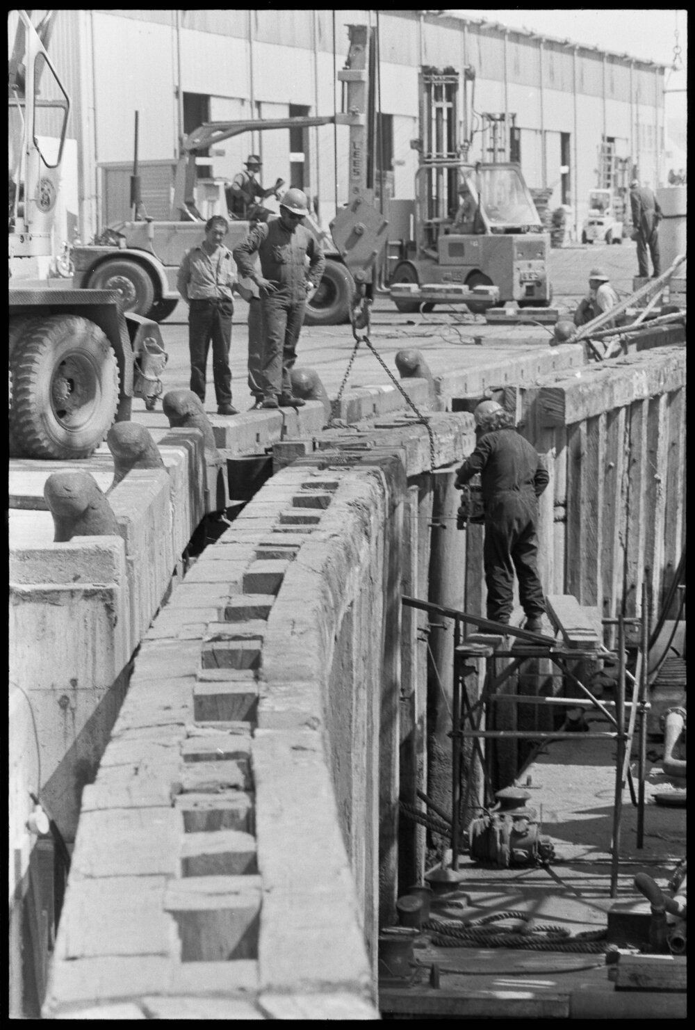 Date27 November 1973Reference NumberPhoto gcc-30635DescriptionNew piles to support a stern-loading link span at the Mount Maunganui Wharf, the overall project cost $650,000. Published 27 November 1973.FormatNegativePhysical Description35mm black-and-white negative (1/3)Photographer/CreatorBay of Plenty Times