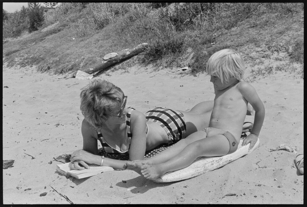Date28 November 1973Reference NumberPhoto gcc-30657DescriptionMrs L. M. Perry of Tauranga, catches up on reading in the sun with 4-year-old son Lorenz at Mount Maunganui beach. Published 28 November 1973.FormatNegativePhysical Description35mm black-and-white negative (1/3)Photographer/CreatorBay of Plenty Times